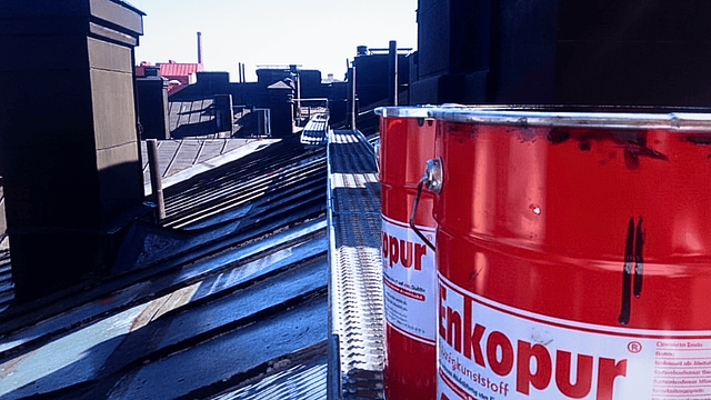 Enkopur® -tiivistysmenetelmällä voi nopeasti ja tehokkaasti tiivistää mm. läpireiät, saumat, kourut ja vuotokohdat.